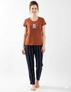 A soft, breathable 100% Rayon co-ord with a comfy tee and relaxed pyjamas. Easy to wear, easy to love—perfect for cozy nights and lazy mornings.