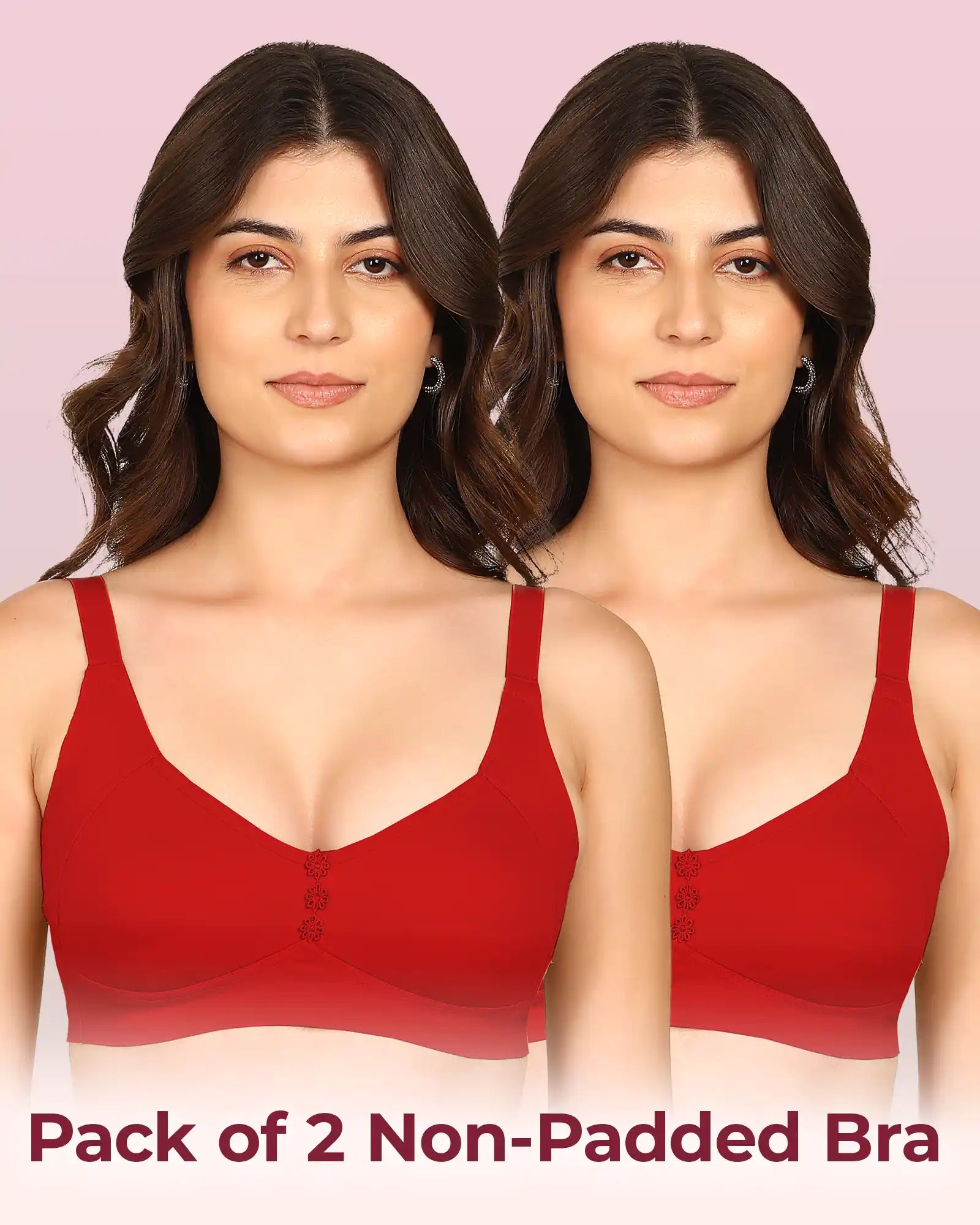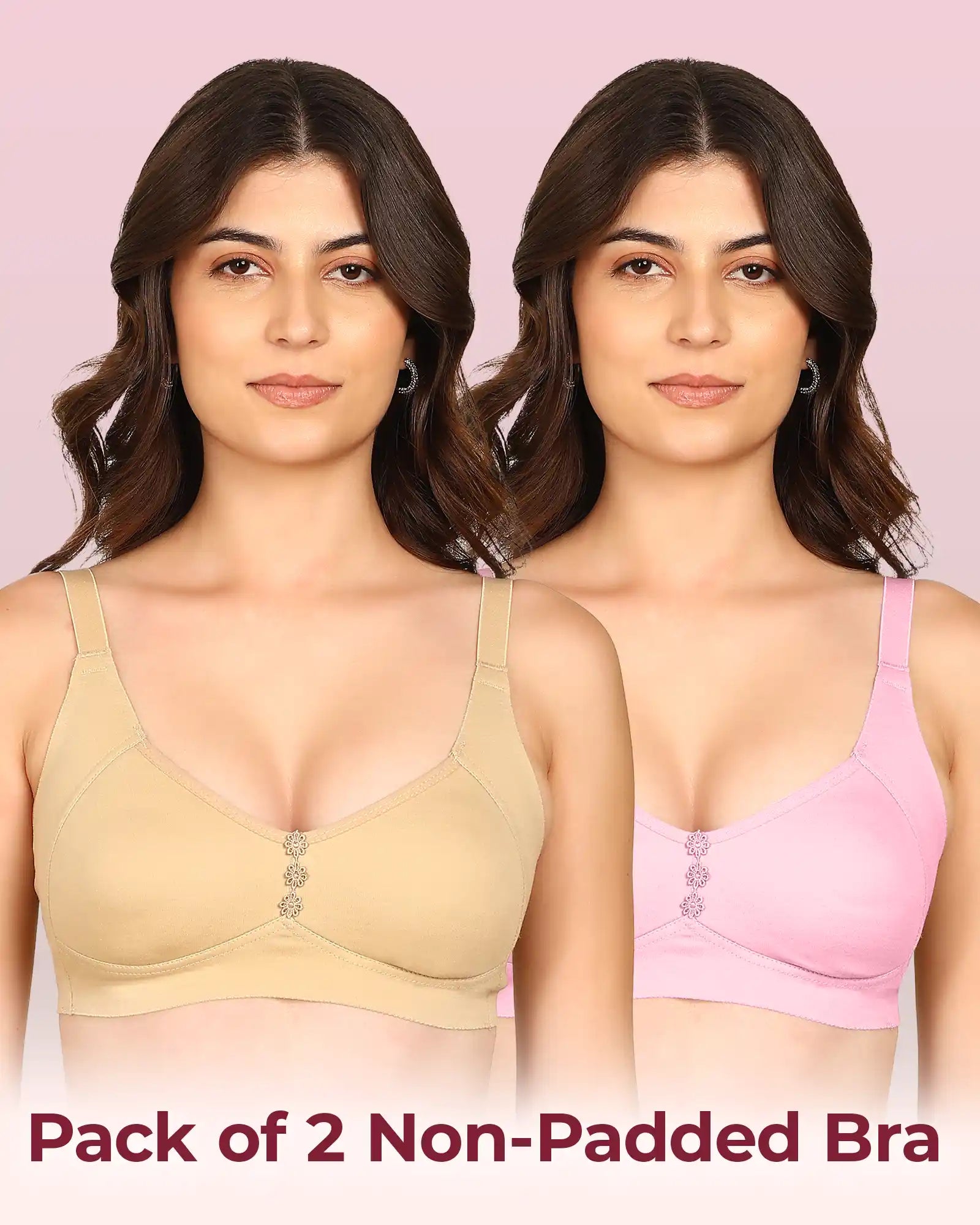 Komli Bonded Breathable Cotton Plus Size M-Frame Minimiser Non-Padded Bra (KB-405) (Pack of 2)