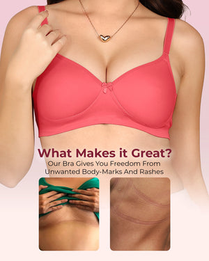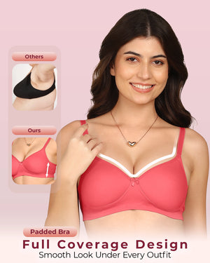 Komli Bonded Breathable Cotton Full Coverage Padded Bra (KB-1013-CORAL)