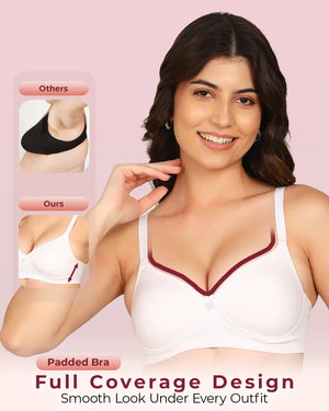 Komli Bonded Breathable Cotton Full Coverage Padded Bra (KB-1013-WHITE)