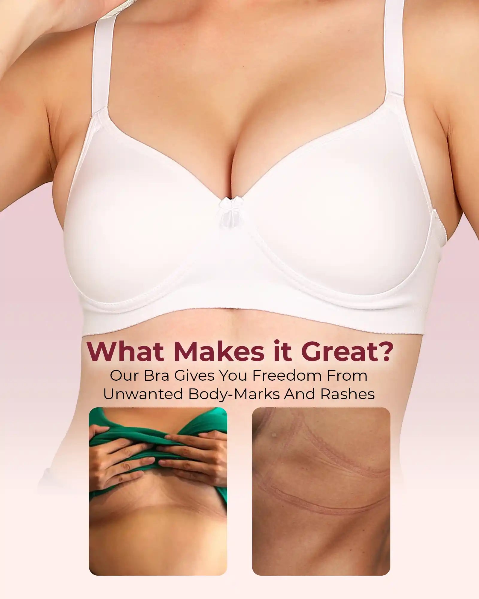 Elastic-Free Bottom Band: Designed without traditional elastic to prevent digging, underbust marks and discomfort — all-day irritation-free support.