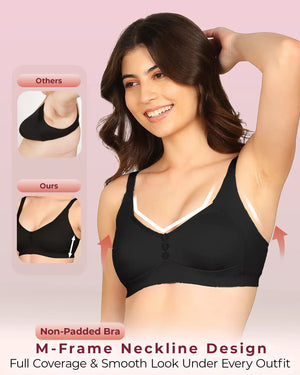 Komli Bonded Breathable Cotton Plus Size M-Frame Minimiser Non-Padded Bra (KB-405-BLACK) | All Shades (7)