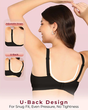 Komli Bonded Breathable Cotton Plus Size M-Frame Minimiser Non-Padded Bra (KB-405-BLACK)
