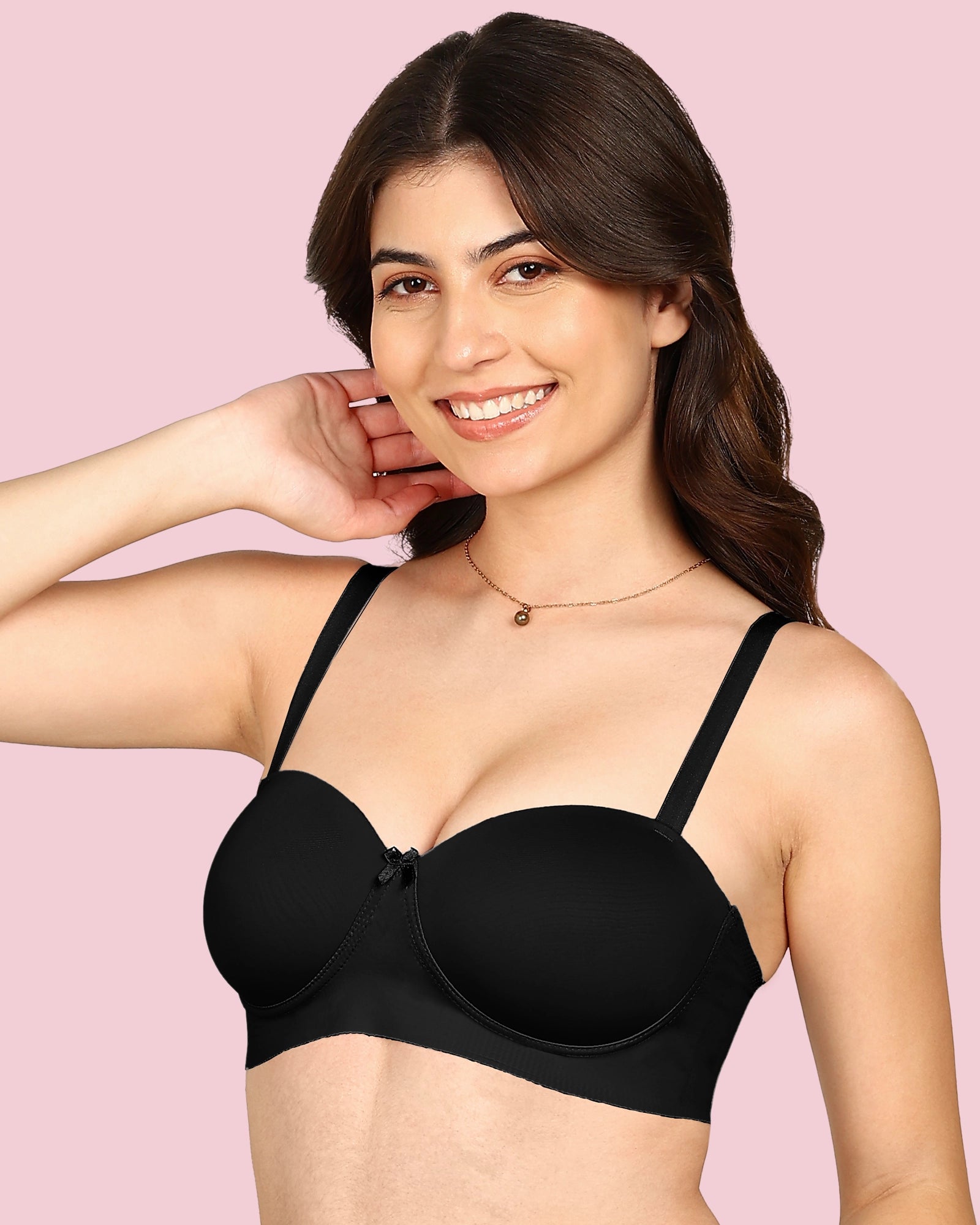 Komli Bonded Demi-Cup Padded Cotton Spandex Bra (KB-91012-BLACK) | All Shades (3)