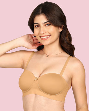 Komli Bonded Demi-Cup Padded Cotton Spandex Bra (KB-91012-FAWN) | All Shades (3)