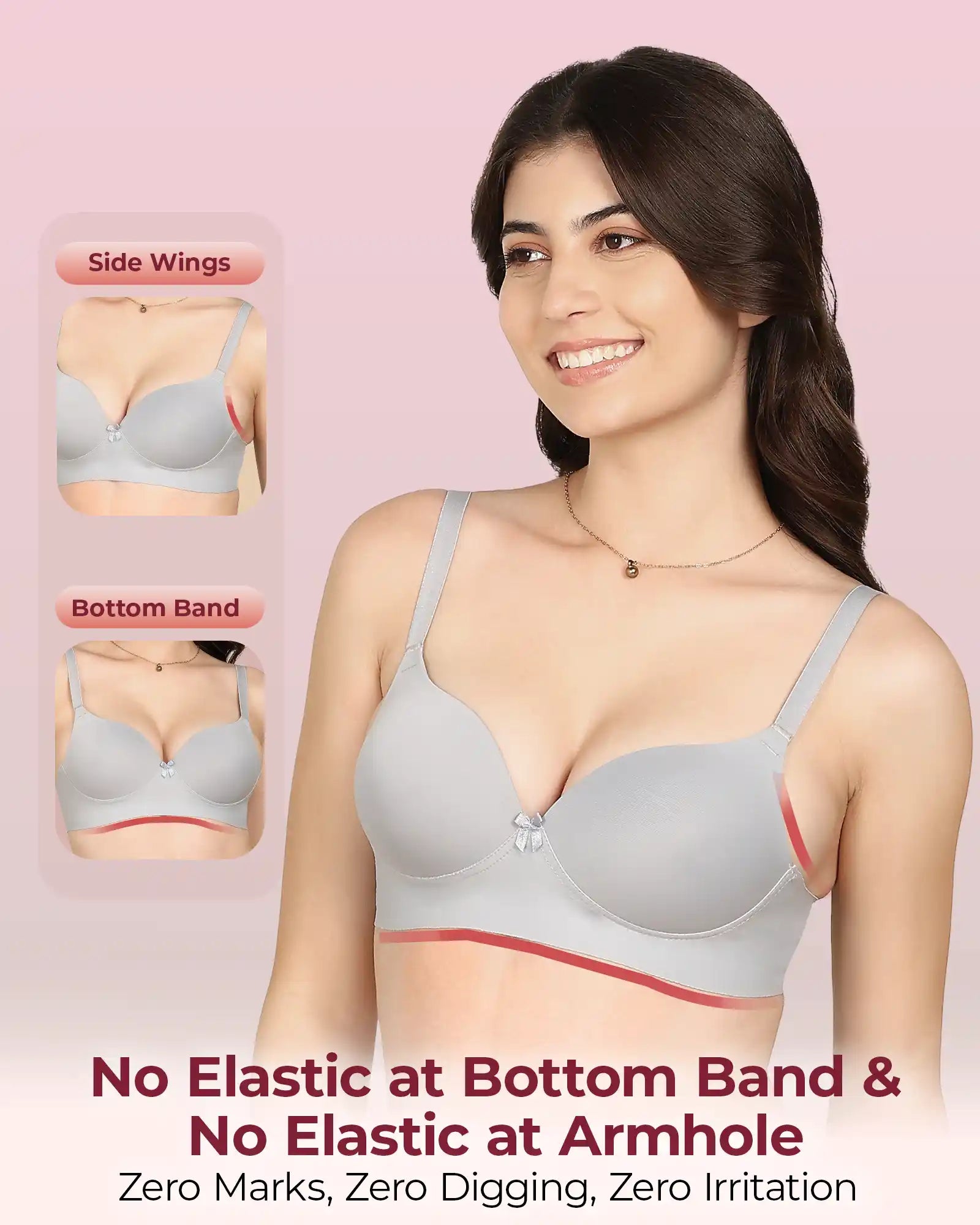 Elastic-Free Bottom Band & Sidewings: Designed without traditional elastic to help prevent digging, rashes and red marks—ideal for irritation-free all-day wear.