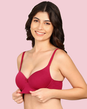 Komli Cotton Bonded Seamless Push-Up Bra (KB-93510-WINE)