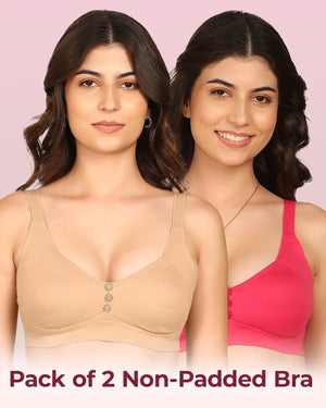 Komli Bonded Breathable Cotton Plus Size M-Frame Minimiser Non-Padded Bra (KB-405) (Pack of 2)