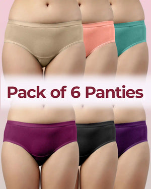 Komli High Coverage Cotton Spandex Hipster Panty with Stay-Fresh Treatment (Pack of 6) | All Shades (0)