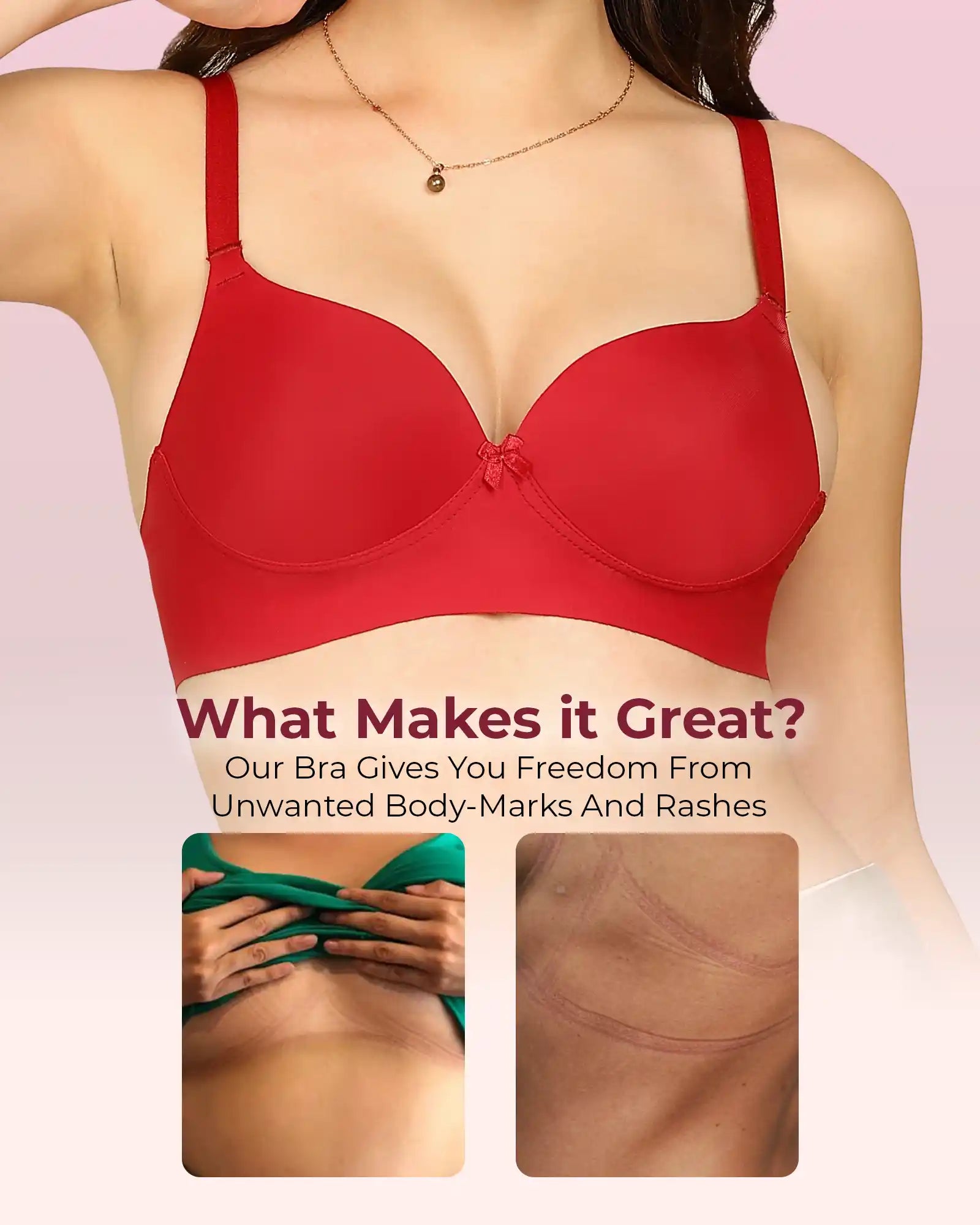 Yes! Seamless bonded bras are designed for daily comfort. With no elastic digging in and no stitches causing irritation, they feel weightless, stay breathable in Indian weather, and offer gentle support all day long.