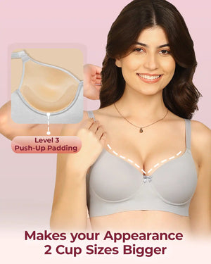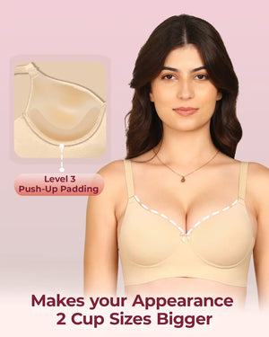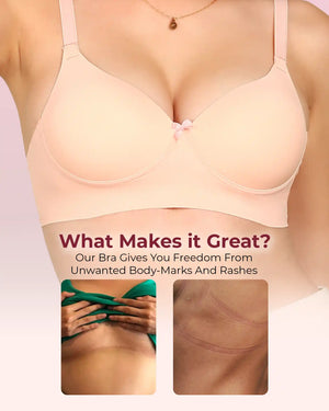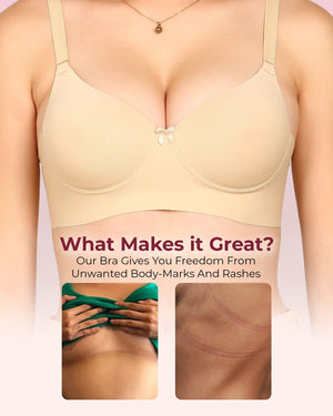 Turn up the confidence with our Easy-Fit Push-Up Bra. Designed with advanced stitch-free bonding technology, it stays invisible under any outfit while giving you a smooth, flawless finish. The push-up cups add natural lift and volume, enhancing your curves with a rounded, fuller shape. Made with elastic-free bottom band and sidewings, it eliminates digging, rashes, and red marks for irritation-free comfort. Breathable, skin-friendly fabric feels like a second skin, making this bra perfect for everyday wear or special occasions when you want extra definition with total ease.