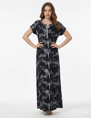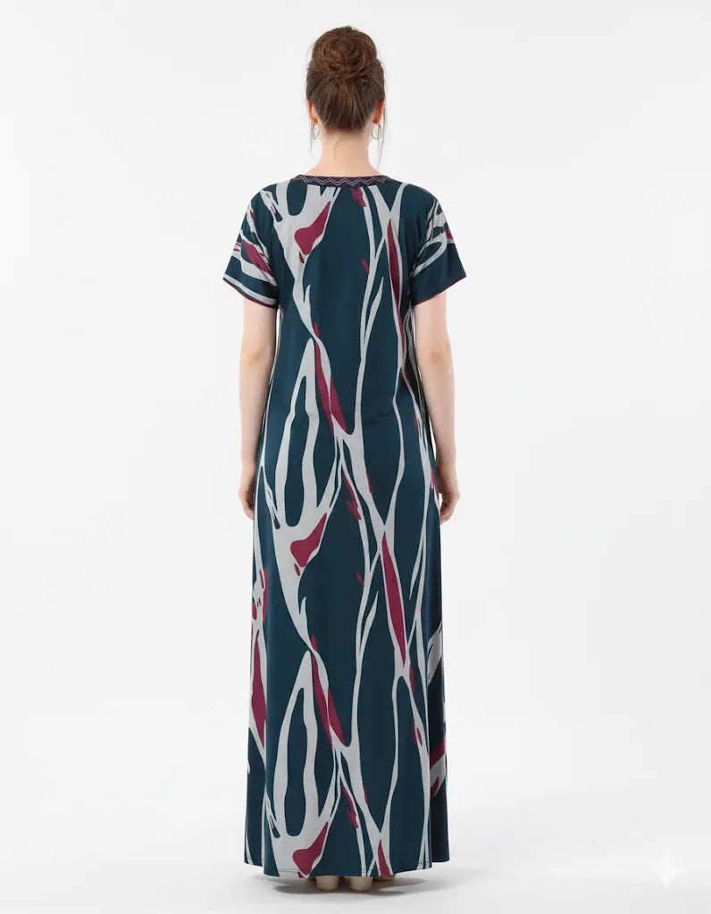 Slip into flowy, breathable 100% Rayon that drapes beautifully and feels cool on skin. Ankle-length, relaxed fit—perfect for sleep, lounging, and easy all-day comfort.