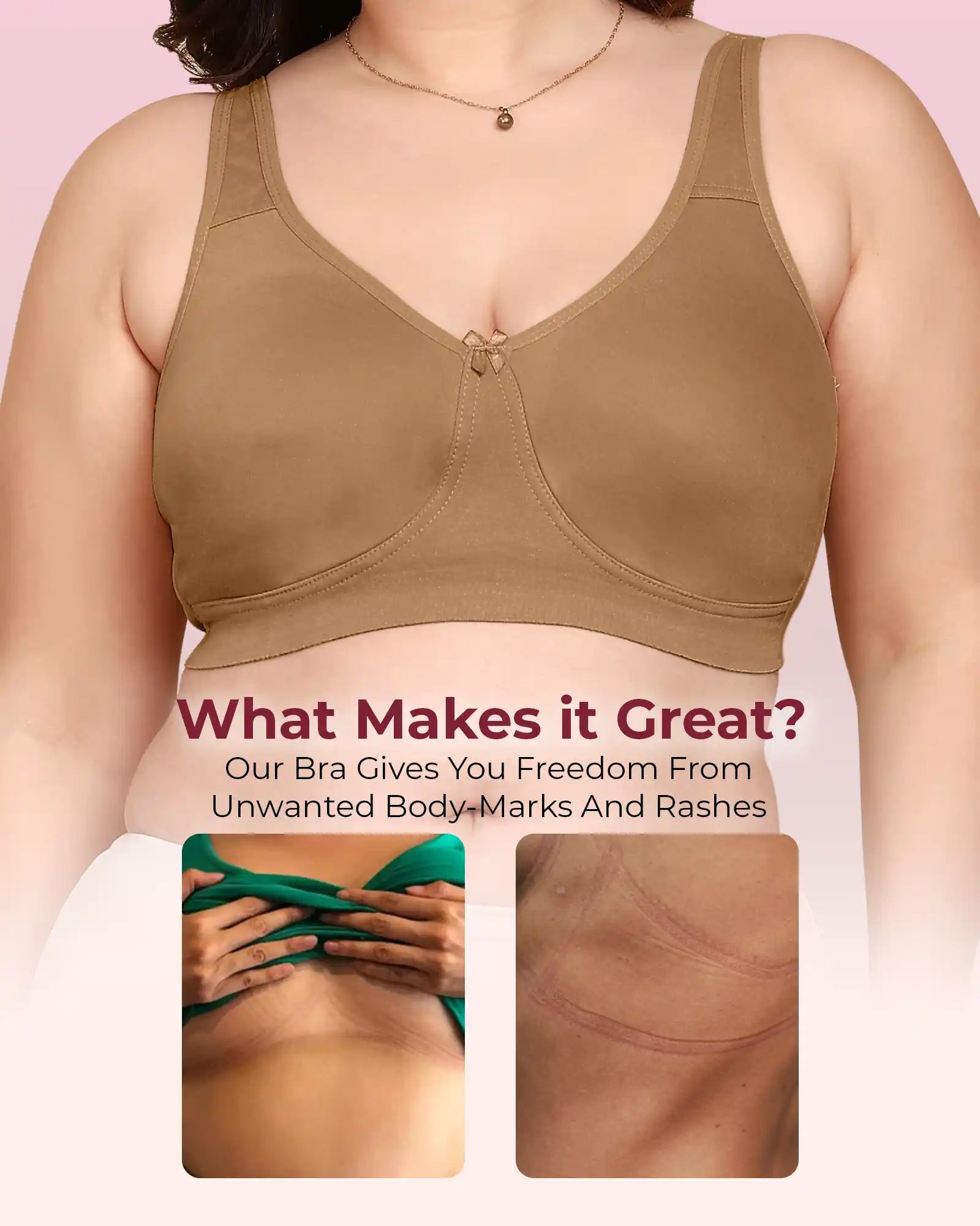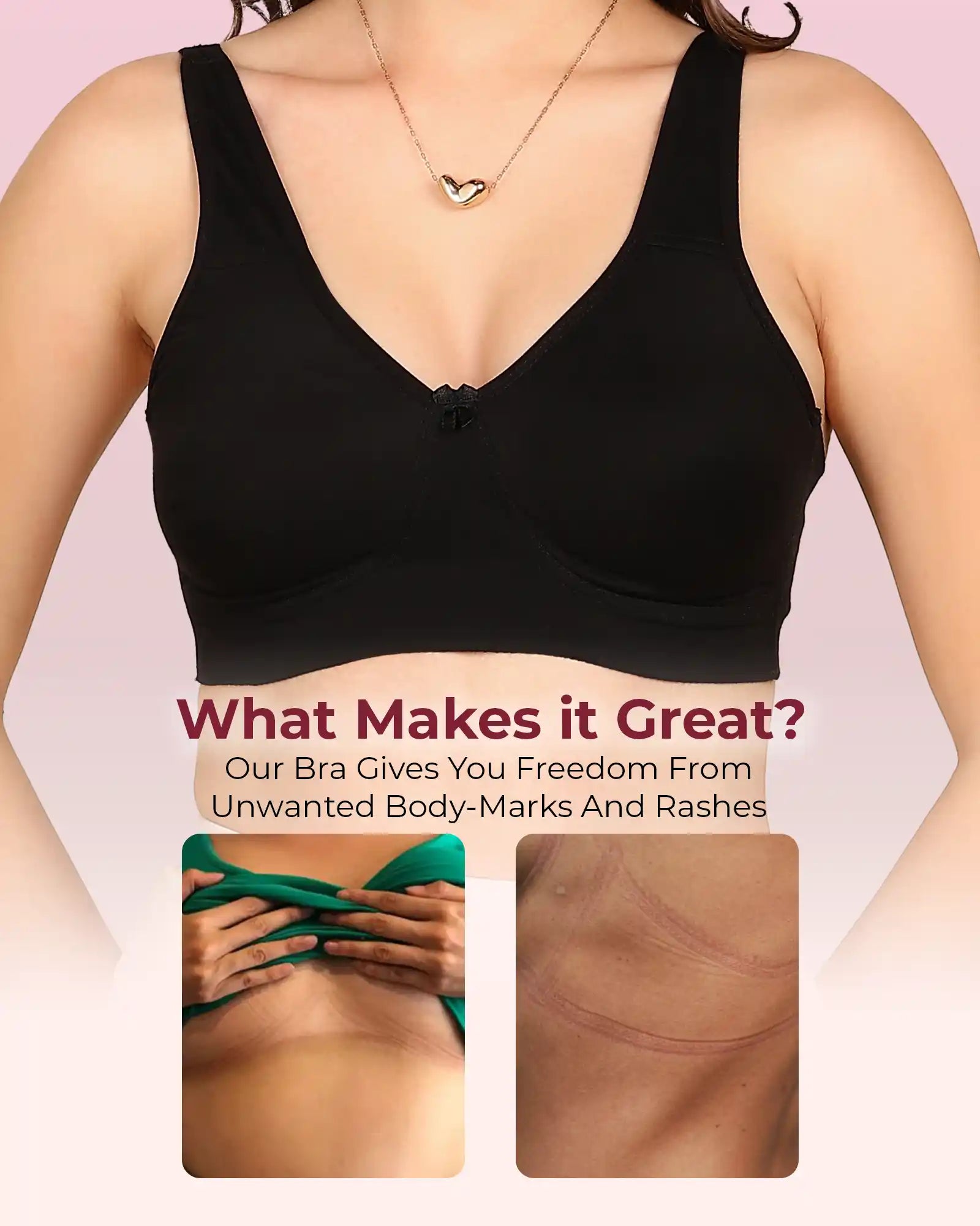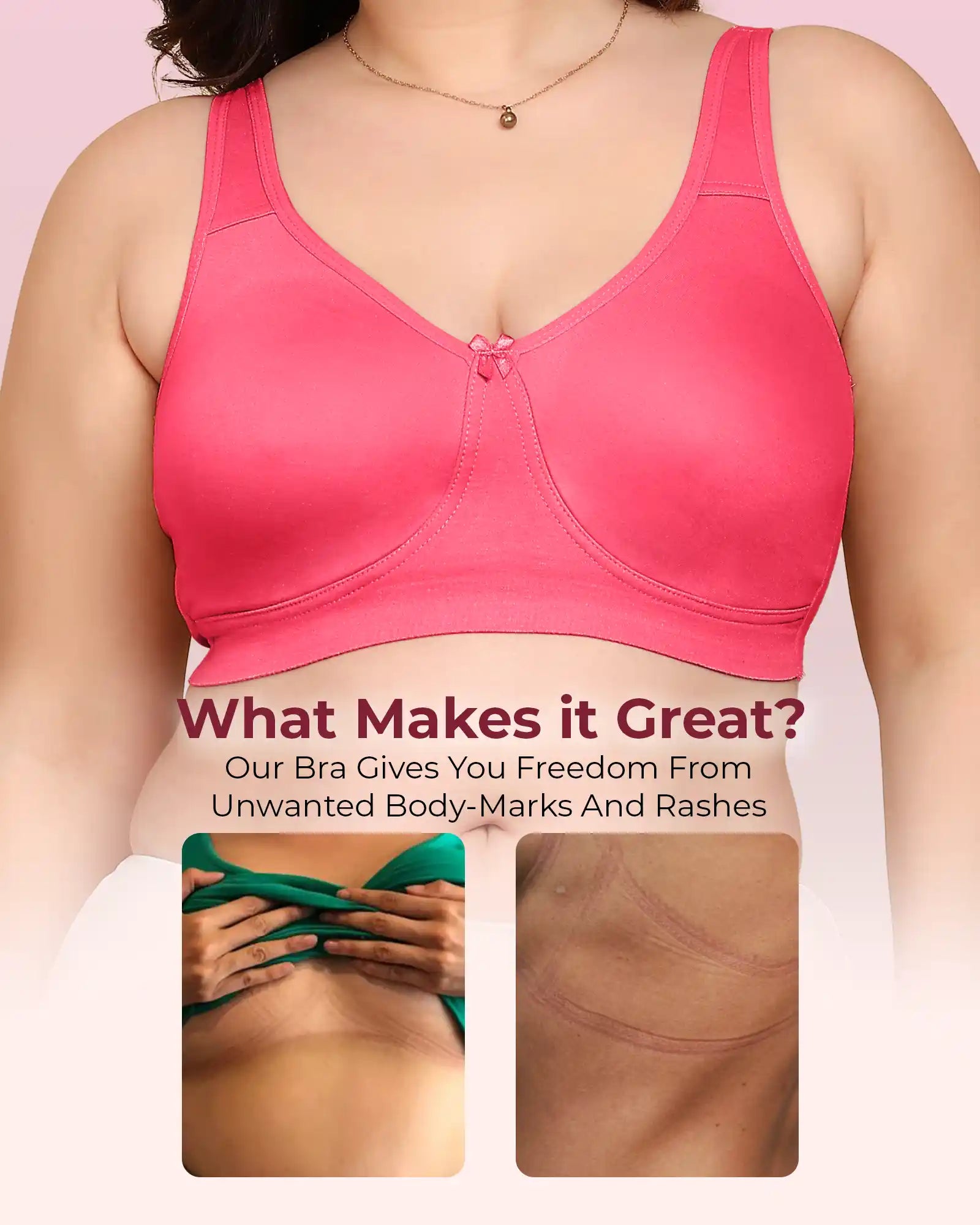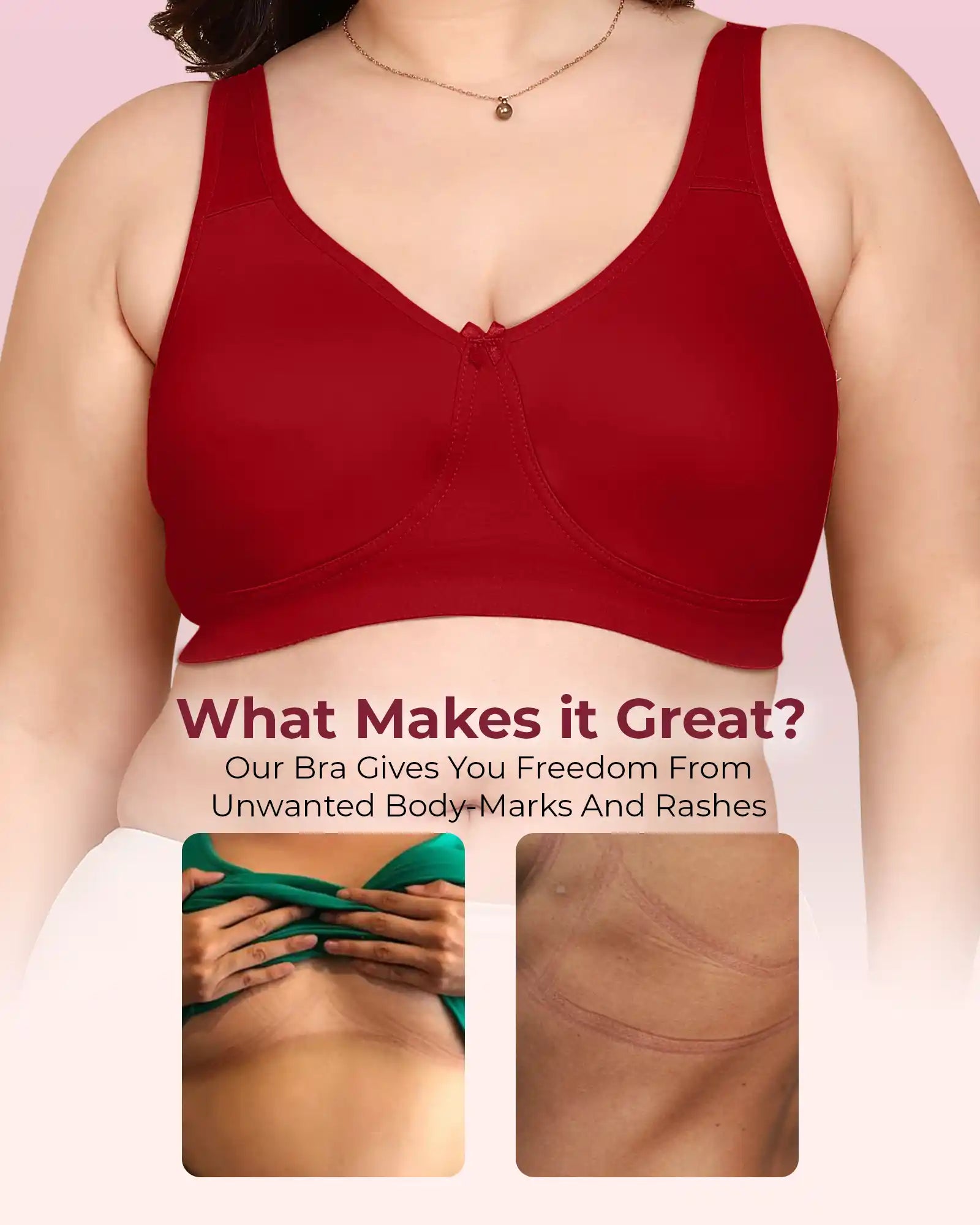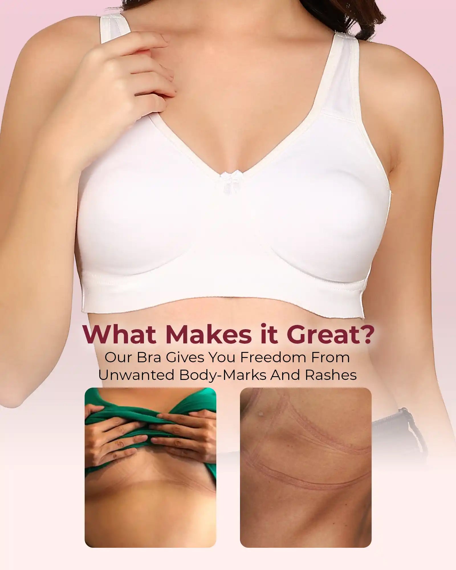 Zero-Irritation Design: Engineered with an elastic-free bottom band and armholes to prevent rashes, digging, and red marks, keeping you comfortable all day long.