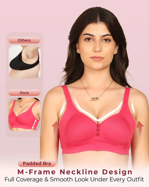 Komli Bonded Breathable Cotton Plus Size M-Frame Minimiser Padded Bra (KB-408) (Pack of 2)
