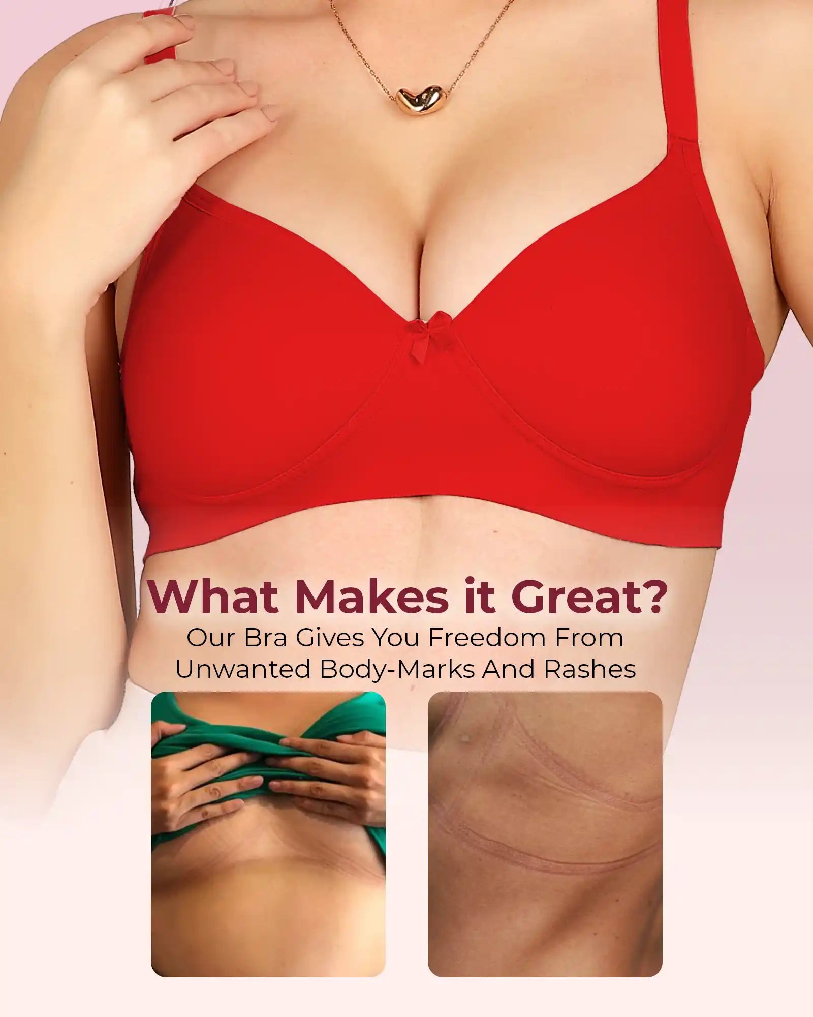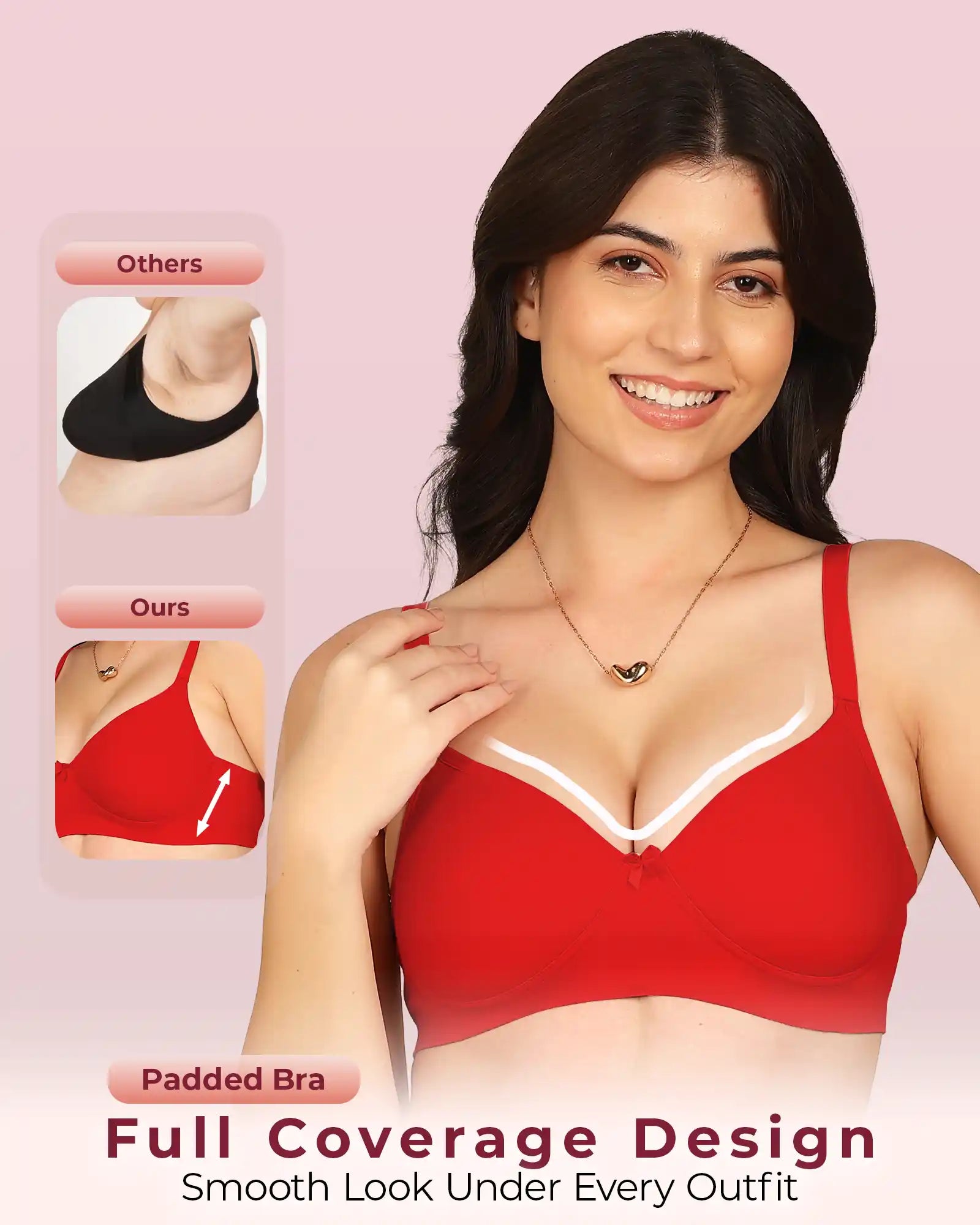 Komli Bonded Breathable Cotton Full Coverage Padded Bra (KB-1013-RED) | All Shades (8)