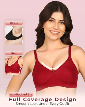 Komli Bonded Breathable Cotton Full Coverage Non-Padded Bra (KB-352-WINE) | All Shades (9)