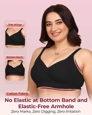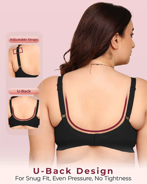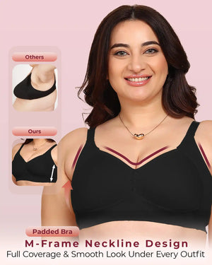 Komli Bonded Breathable Cotton Plus Size M-Frame Minimiser Padded Bra (KB-408-BLACK)