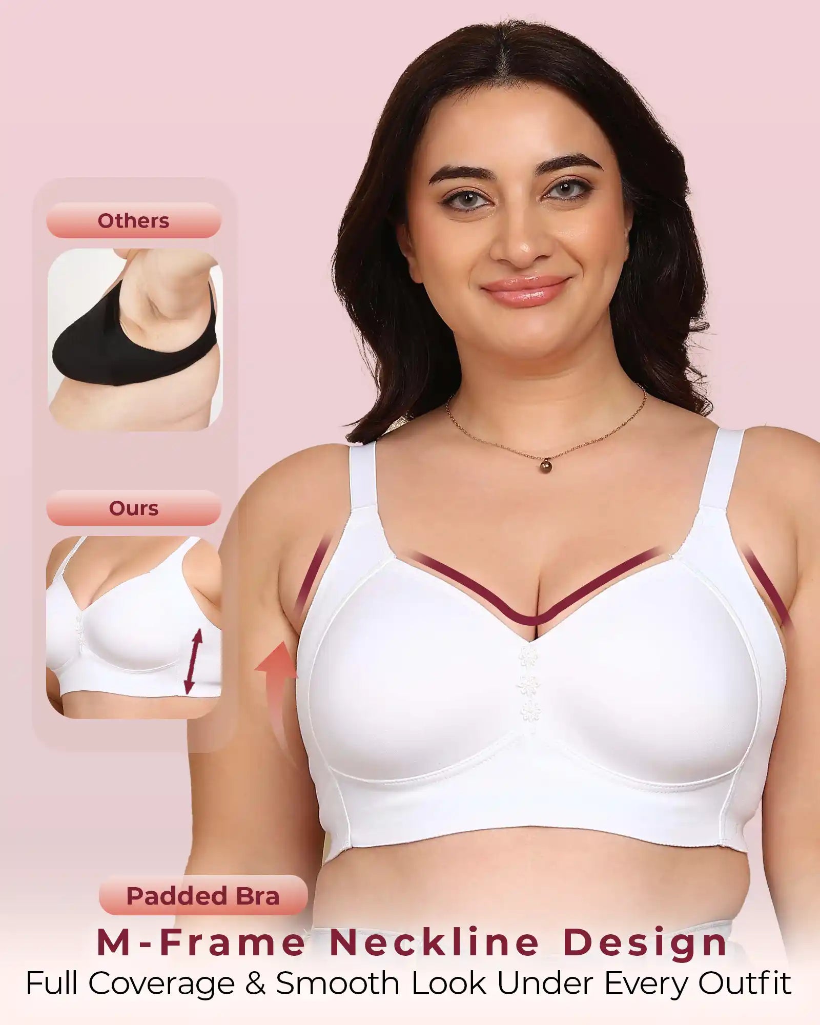 Komli Bonded Breathable Cotton Plus Size M-Frame Minimiser Padded Bra (KB-408-WHITE) | All Shades (7)