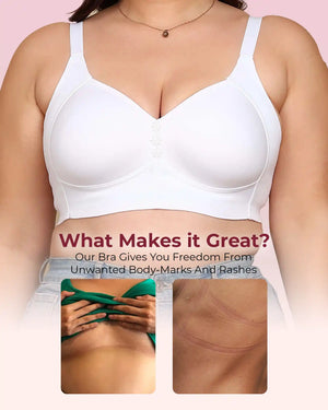 Elastic-Free Bottom Band: The bottom band is crafted without traditional elastic to prevent pinching, rashes, or body marks—just soft and irritation-free support.