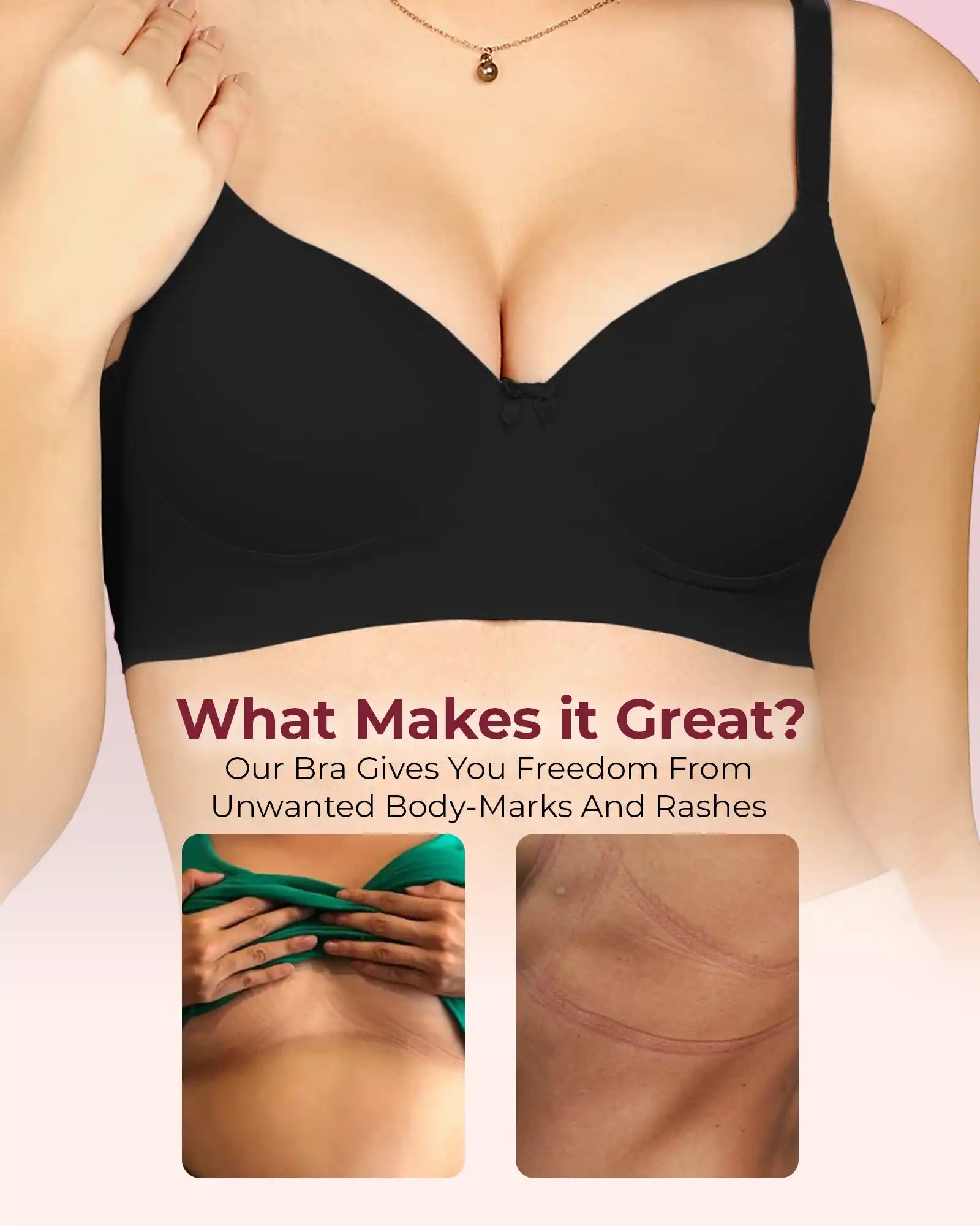 Meet the Komli Bonded Polyamide Push-Up 3/4 Coverage Bra (Level 3 Padding), created for days when you want extra definition without giving up comfort. With seamless bonded, stitch-free construction, it stays invisible under fitted tops and dresses, while Level 3 push-up padding delivers a high push-up effect for noticeable lift and enhanced volume. An elastic-free bottom band and side wings keep irritation at bay, and soft polyamide fabric hugs the body like a second skin for all-day ease.